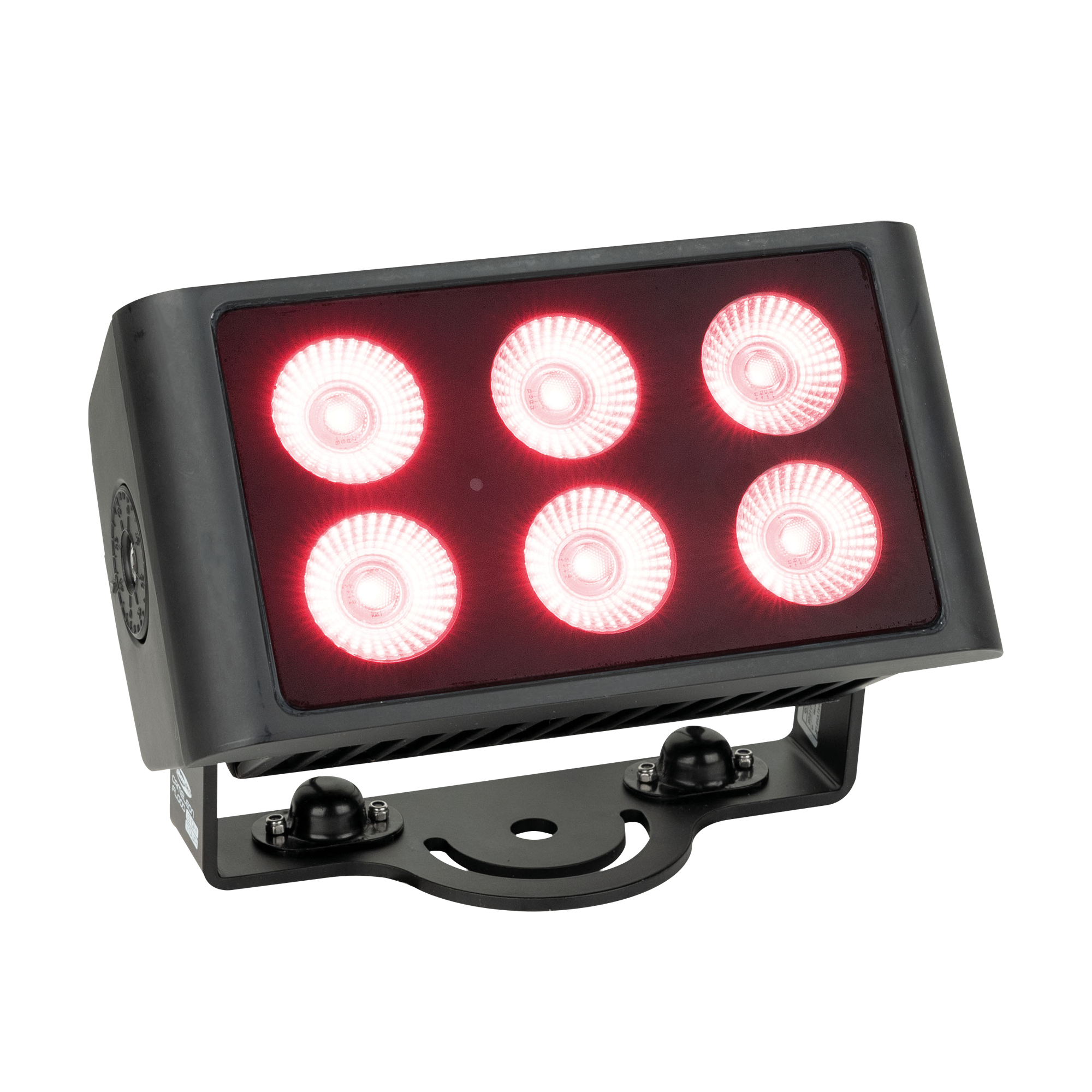 The Showtec Cameleon Flood 6 Q6 Tour is a 6x 10 watt RGBWA-UV LED Flood with IP65 rating, suitable for indoor and temporary outdoor applications. It has a 40° fixed beam angle and features 0-100 % dimmer and 0-20 Hz strobe effects, perfectly suitable for colour mixing on stage. The Cameleon Flood 6 Q6 Tour can be controlled manually, via DMX, Master/Slave, and IR remote in either Manual or Auto-run mode with many available built-in programs. It is equipped with Seetronic Power Pro True IP65-rated power connectors, which are compatible with the leading brands. A bracket for easy fixation is included. An infrared remote is optionally available.
