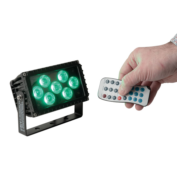 Please note that a remote control (42704) is not included but required for controlling the Cameleon Flood 7/3 RGB. Not only for wireless control but also for DMX and Master/Slave control.