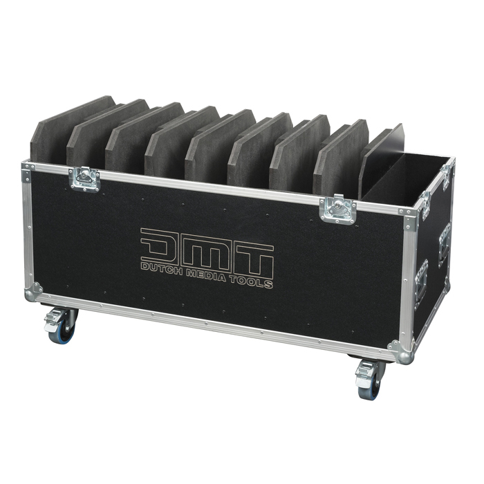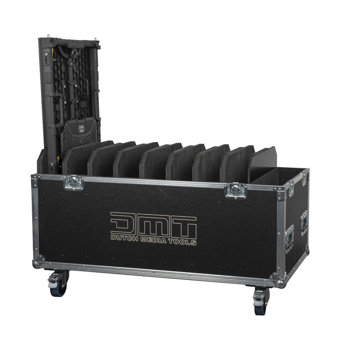 The DMT Case for 8x DMT Premiere Series is a premium line flight case for storing up to eight LED screens including dedicated cables and accessories. The LED screens can be put in vertical position with maximum protection due to the use of high-impact polyurethane and polyethylene foam interior.