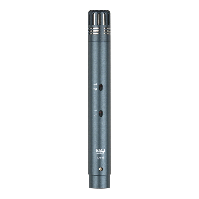 The DAP CM-45 is a condenser overhead microphone with -10 dB pad switch and low cut filter switch, suitable for recording drum overheads. The construction is based upon the back electret principle allowing it to handle high sound pressure levels without causing distortion. In addition, it mainly records medium and high-frequency sounds. As a result, background noise with this microphone is minimal.