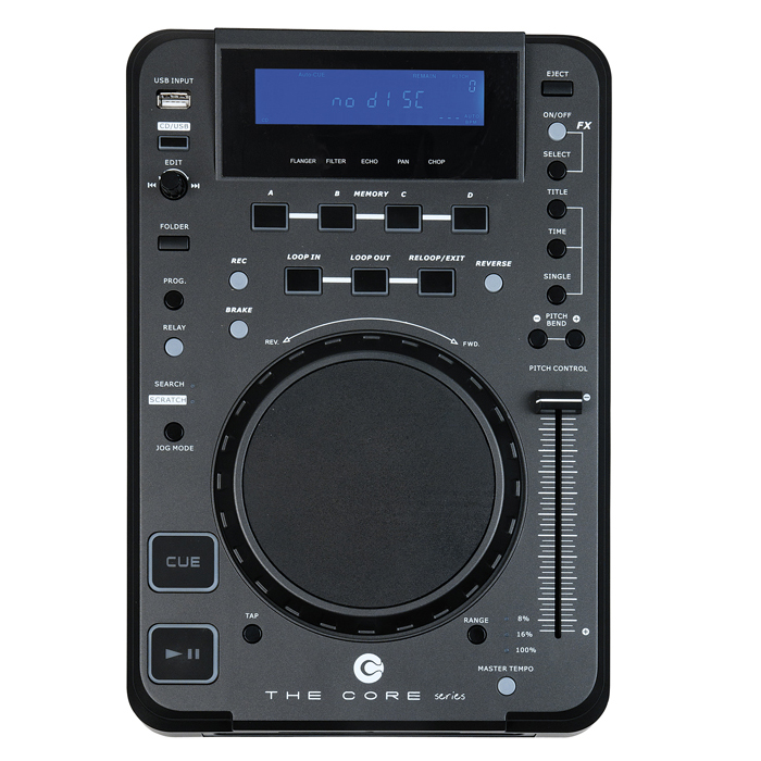 This tabletop is equipped with all important functionalities, such as seamless looping, adjustable BPM auto loop, 4 memories for cues or loops, 5 BPM related effects, 100% pitch control with master tempo function, reverse play and scratch. In addition, with the CDMP-750 you can create a cue in scratch mode and adjust the touch sensitivity of the jog wheels.