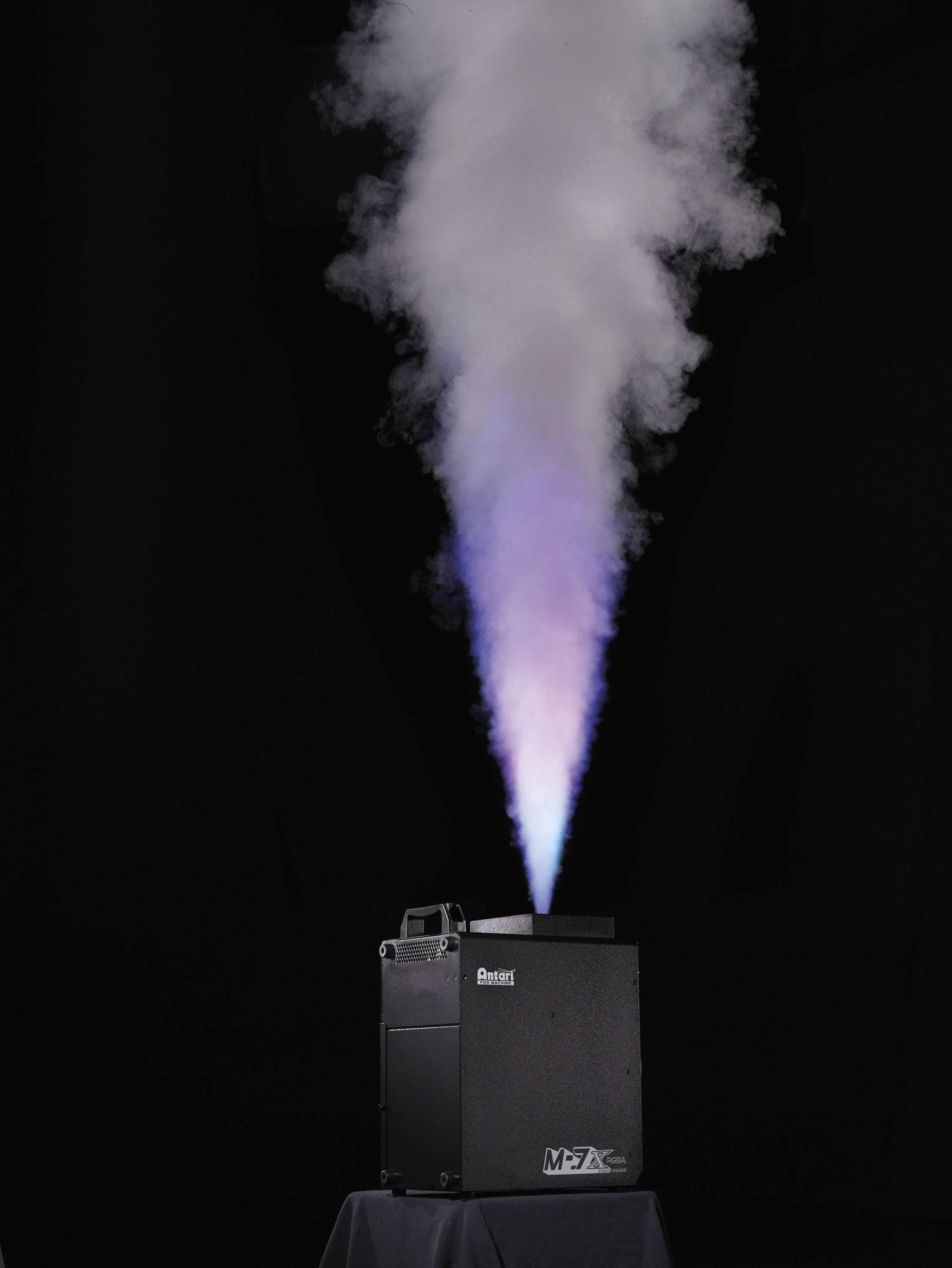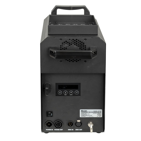 The Antari M-7X is a professional upright fogger with a powerful output and RGBA LEDs to create a colourful CO₂ effect. It can be used in horizontal and vertical, up and downwards position without problems. The mechanical design of M-7X is made for rentals because the fluid tank is kept in a separate compartment inside the machine. This ideal for transport, no need to take care of the position.