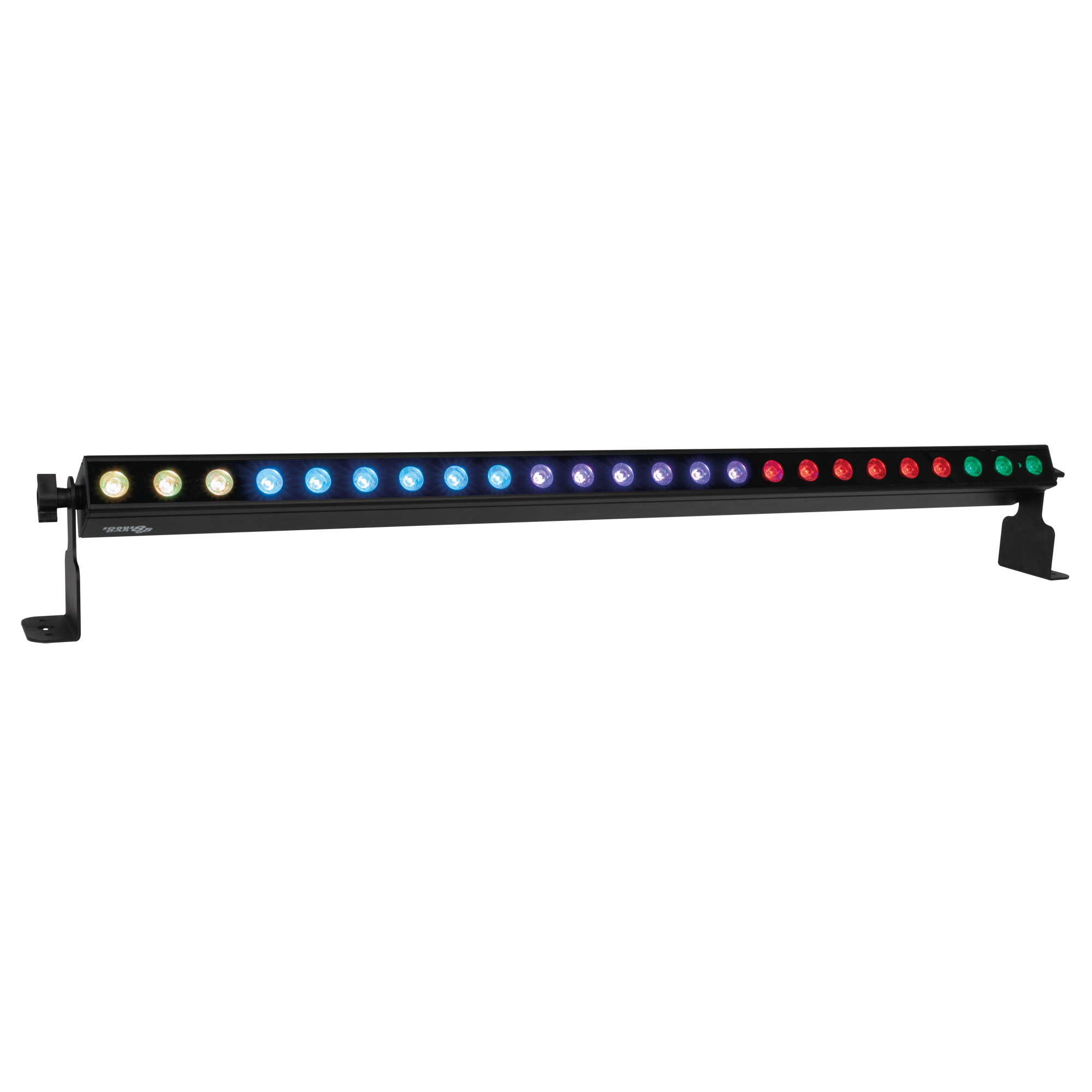 The Showtec Sonus Bar 8B is a battery-powered light bar with 24 RGBW LEDs of 2 W each. The battery lasts 4.5 hours at maximum output, but longer in typical use (which is not all LEDs on 100%). The LEDs can be controlled in up to 8 sections via up to 38 DMX channels. It also features a high-quality sound-controlled mode, which is useful in many occasions and for professionals and beginners alike. It can also work in stand-alone mode with built-in programs, manual settings, in master/slave mode and it supports RDM. The Showtec Sonus Bar 8B is convection-cooled, so it is completely silent in operation.