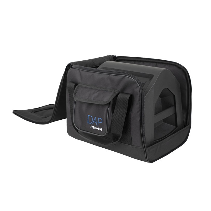The Transport Cover for PSS-106 is a dedicated transport and protective cover for the DAP PSS-106 Bluetooth MP3 Battery Speaker. It is padded and made from durable and water-resistant Codura fabric, offering a lightweight protection layer for your PSS-106. A cut-out with hook and loop cover flap provides easy access to the speaker handle. The cover is fitted with a useful storage compartment for accessories such as cables.